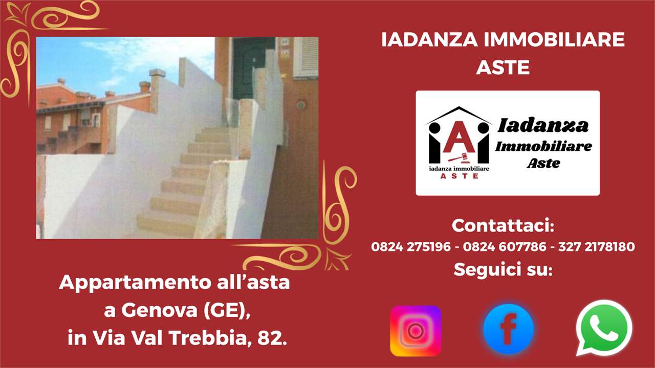 Codice Annuncio: AQR 24AQR158 Offerta Minima: 55.691,09 Prezzo Base: 74.254,79 Valore di Perizia: 132.008,50 Data e Ora dellAsta: 09/04/2026 15:00 Termine Presentazione Offerte: 07/04/2026 12:00 ******************************************************************************** N.B: -Le foto e la geolocalizzazione presenti negli annunci potrebbero essere solo indicative. La documentazione ufficiale invece è disponibile su richiesta e solo essa farà fede sul piano legale .CONTATTARE LO STUDIO PER CONFERMA E PER MAGGIORI INFORMAZIONI ! -La vendita allAsta dellimmobile è stata disposta dal TRIBUNALE DI COMPETENZA e presuppone che linteressato - qualora intenda partecipare in autonomia - abbia piena conoscenza e consapevolezza dei contenuti di tutta la documentazione riguardante la PROCEDURA se non intende rivolgersi ad un Professionista del Settore ! -Per avere maggiori informazioni o per richiedere un sopralluogo potrai contattarci ai seguenti recapiti : Tel: 0824.607786 - 0824.275196 - 327.2178180 Mail: info@iadanzaimmobiliareaste.com Web: www.iadanzaimmobiliareaste.com ******************************************************************************** Appartamento con balcone e cantina allasta a Genova (GE) in Via Val Trebbia, 82. L'immobile è situato nel quartiere residenziale di San Fruttuoso a est del centro di Genova. Labitazione è ubicata al sesto piano di un edificio residenziale ed è così composta: ampia zona giorno con angolo cottura, tre camere da letto, due bagni, corridoio di disimpegno e balcone con affaccio aperto. Completa la proprietà una cantina al piano terzo, utile come spazio di deposito. ------------------------------------------------------------------------------------------------------------------------ ////////////////////////////////SCOPRI LA DIFFERENZA//////////////////////////////////////// Perché sceglierci? PERCHE DI NOI TI PUOI FIDARE! Ti basta compilare la richiesta presente a lato dellannuncio e riceverai tutta lassistenza necessaria per ricercare ed acquistare limmobile che desideri! ////////////////// PROMOZIONI ESCLUSIVE ONLINE///////////////////////// Oltretutto Inviandoci la tua richiesta tramite il FORM DI CONTATTO, presente sulla destra di tutti gli annunci inseriti sul nostro SITO www.iadanzaimmobiliareaste.com otterrai automaticamente: - Una Consulenza gratuita iniziale. - Una polizza Protezione Casa in OMAGGIO! - La restituzione delle spese di istruttoria (solo in caso di aggiudicazione). - Uno Sconto del 3% sul nostro compenso finale. ///////////////// I NOSTRI PUNTI DI FORZA//////////////////////////////////////// Ciò che ci rende unici è il nostro approccio dedicato e professionale, nell'interesse esclusivo del cliente acquirente. Consulenza Gratuita e Professionale: Sempre disponibili per una consulenza senza impegno, con cortesia e professionalità. Indipendenza e Trasparenza: Operiamo su rappresentanza soltanto in favore dellacquirente, senza l'assillo di dover vendere a tutti i costi, garantendo imparzialità e competenze. La nostra reputazione è la tua prima garanzia. Visite Immobiliari Organizzate: Se desideri visionare un immobile, organizziamo la visita in modo completamente gratuito, occupandoci noi di tutte le formalità telematiche necessarie. Istruttoria accurata: A differenza di molti operatori del Settore che si limitano a "smaltire" immobili come "visti e piaciuti", il nostro approfondito esame della pratica (legale, tecnico, condominiale, fiscale, finanziario) ti assicurerà la tranquillità che cercavi. Noi redigiamo una "Relazione di Fattibilità Tecnico/Legale" prima di ogni partecipazione all'asta che sintetizza ogni aspetto della Procedura. Siamo gli unici insomma a "metterci la faccia". Assistenza dedicata passo dopo passo: Il nostro consulente esperto ti assiste in ogni fase, dalla ricerca all'aggiudicazione e anche oltre. Ricerca Personalizzata: Se non hai tempo per la ricerca, inviaci la tua richiesta tramite il SITO e lo faremo noi per te. Chiarezza Contrattuale: Siamo uno Studio di Consulenza Tecnico/Legale, non un'agenzia immobiliare tradizionale. Il rapporto è regolato da un incarico chiaro, sottoscritto dalle parti, senza sorprese per il Cliente. ////////////////// SERVIZI DI BASE INCLUSI/////////////////////////////////////// Offriamo un pacchetto completo per assisterti e consigliarti nella massima sicurezza: Consulenza gratuita (telefonica o su appuntamento). Analisi documentale approfondita in collaborazione con esperti legali, tecnici, notai e commercialisti. Assistenza completa per ogni adempimento: visite, pratiche, firme digitali, domande di partecipazione, saldi, tasse, consegna immobile, sanatorie, ecc. Visita dellimmobile organizzata gratuitamente dal nostro Studio in via telematica. Consulenza creditizia su misura con un esperto di Banca. Supporto Stragiudiziale per analizzare e gestire situazioni debitorie complesse. ------------------------------------------------------------------------------------------------------------------------ CONTATTACI SUBITO Per avere maggiori informazioni o per richiedere un sopralluogo potrai contattarci ai seguenti recapiti : Tel: 0824.607786 - 0824.275196 - 327.2178180 Mail: info@iadanzaimmobiliareaste.com Web: www.iadanzaimmobiliareaste.com